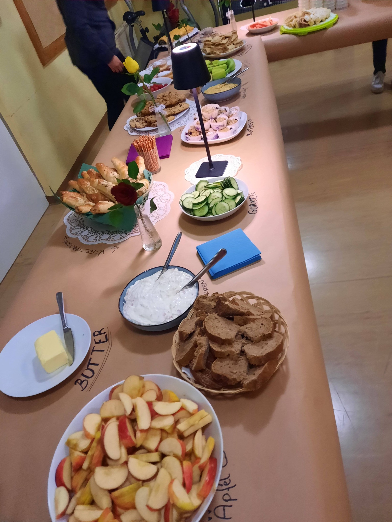 Außerdem gab es kulinarische Köstlichkeiten passend zur Jahreszeit: 3 Variationen Kürbissuppe und „blutige Finger“ als Hauptspeise. Das war ein Festessen für alle Schüler:innen, gekocht von unseren Schüler:innen.