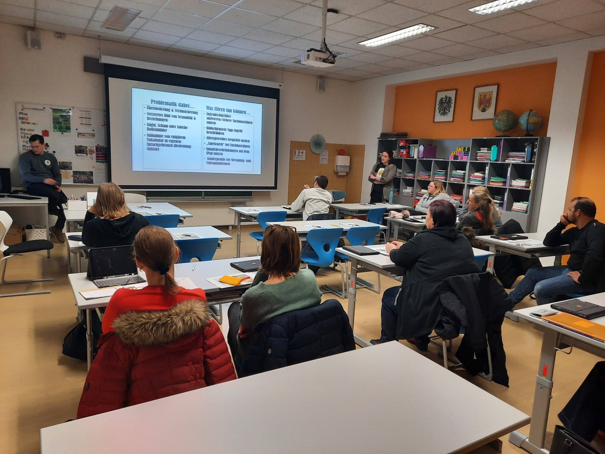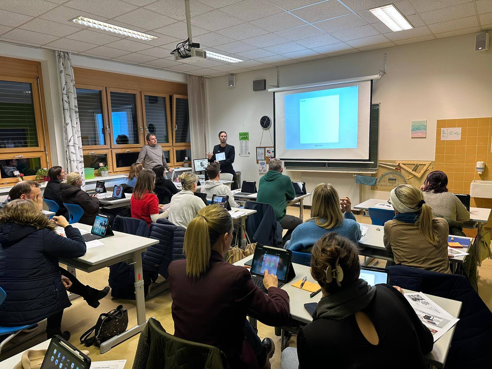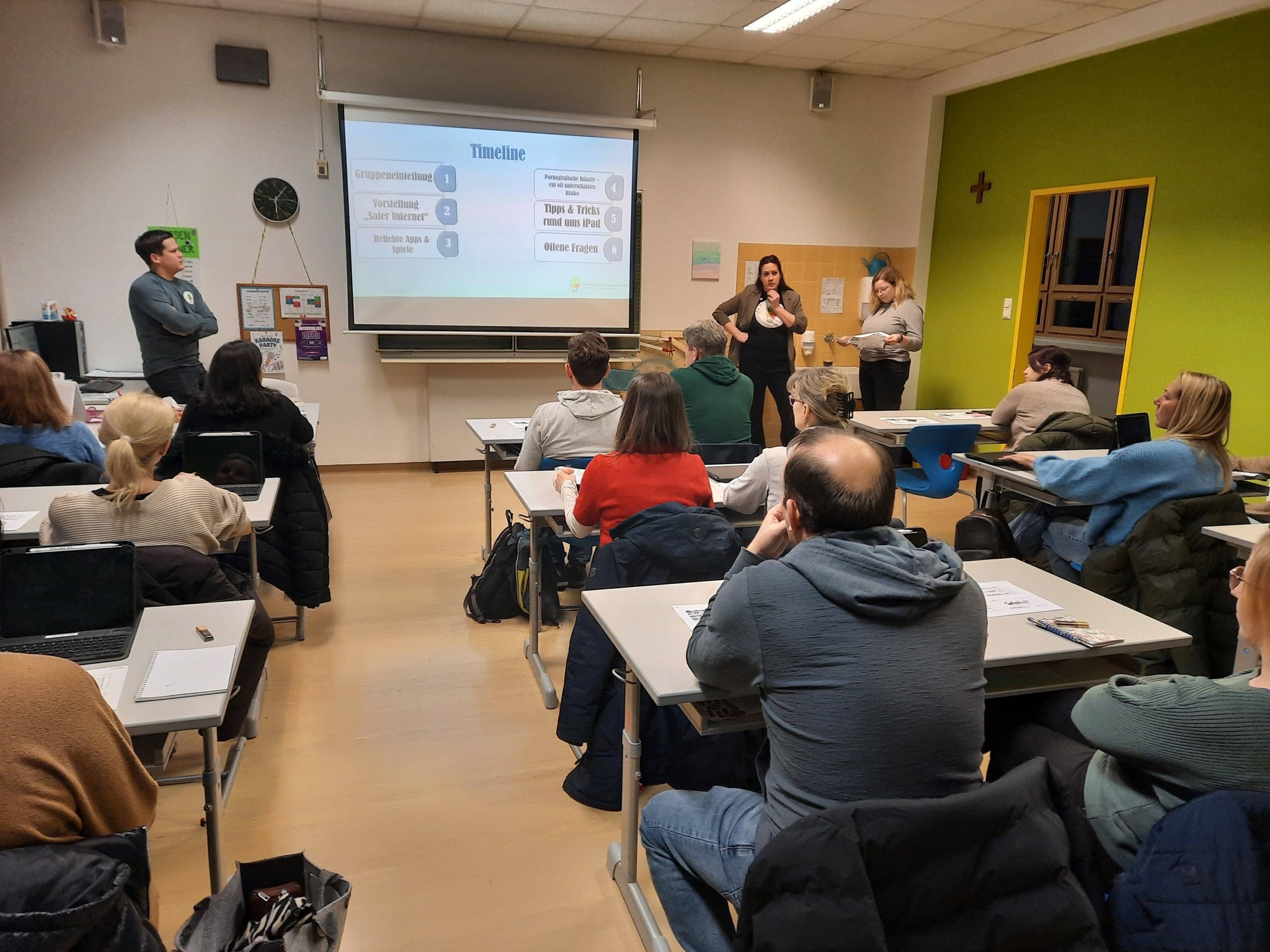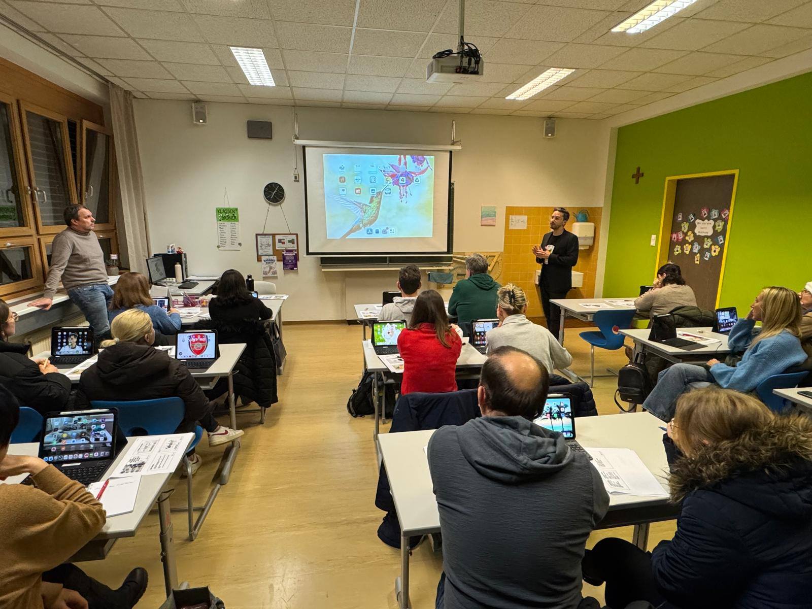 Am Donnerstag, den 22.01., fand unser iPad-Infoabend statt. Ein Teil unserer Lehrer:innen und unser IT-Experte Bernd Türk hat für interessierte Eltern wichtige Infos rund um die iPad-Nutzung, Safer Internet, Jugendapps und Onlinespiele zusammengetragen und präsentiert.
