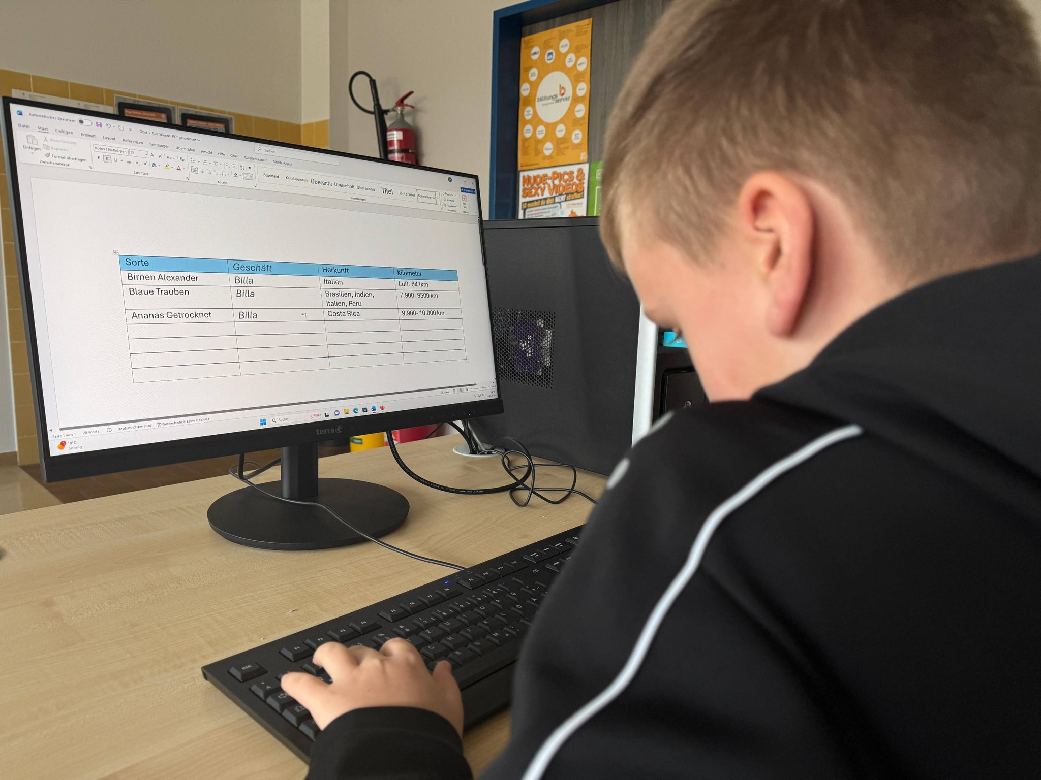 Unsere Schüler:innen der zweiten Klassen kombinierten dabei Tabellen in Worddokumenten, Internetrecherche und das wichtige Thema Regionalität. Auf den Websites bekannter Supermärkte wie Billa, Spar und Co nahmen sie verschiedene Obst- und Gemüsesorten genau unter die Lupe. 🍏🥦